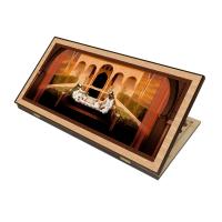 Каждая комбинация показывает количество лунок, на которое можно передвинуть фишку. Не стоит думать, что чем большее число выпало, тем лучше. Конечно в некоторых случаях это так и есть, однако бывают ситуации, когда только дубль единичек может спасти вас от неминуемого проигрыша. Нарды традиционно изготовлены из дерева, а в качестве украшения выбрано тематическое изображение - «2 персидских шейха за игрой в нарды».
