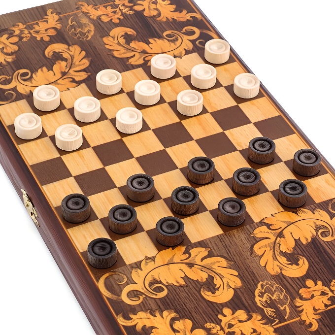 Размер игрового поля (для шашек): 24 см х 24 см.
