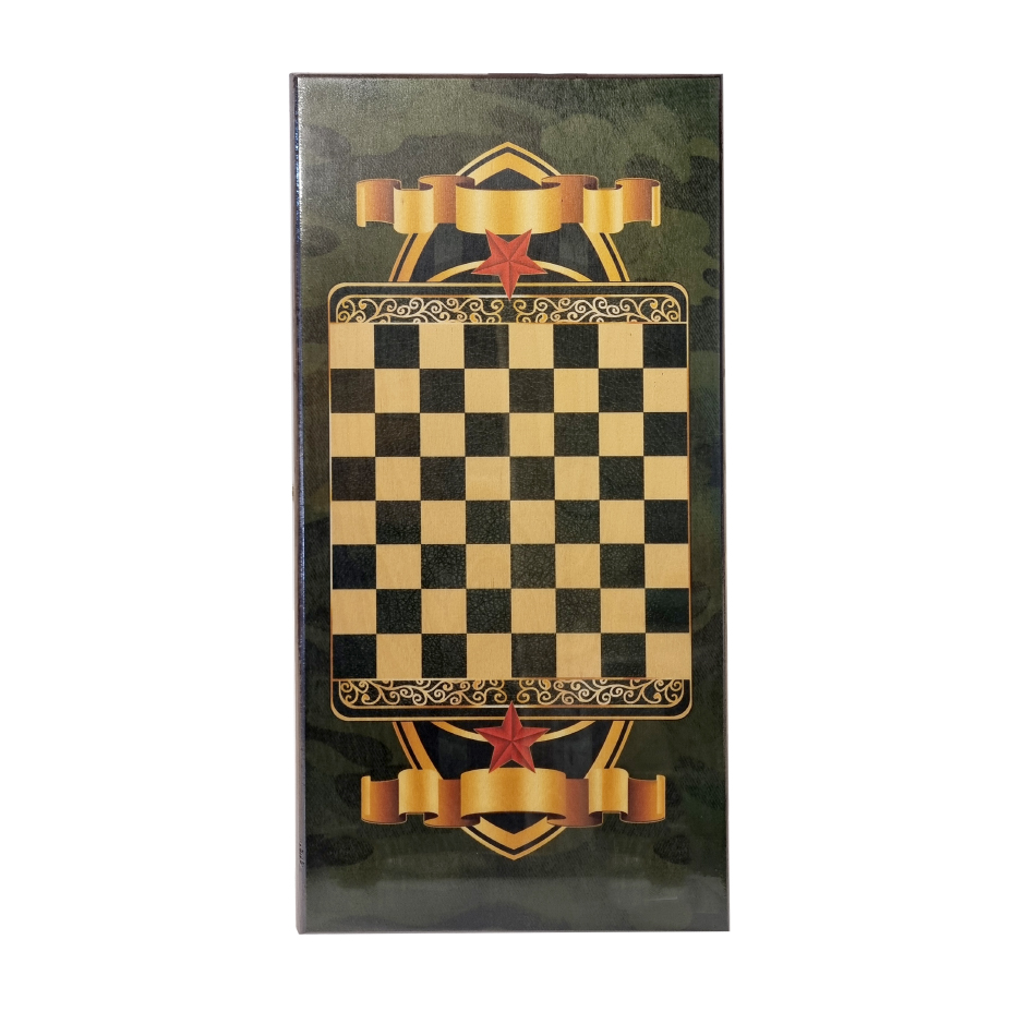 На внешней стороне нанесено поле для игры в шашки или шахматы.