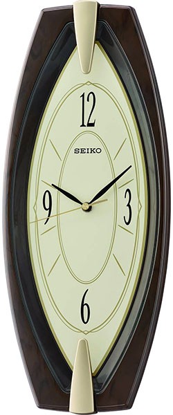 Настенные часы с плавным ходом секундной стрелки. Пластиковый коричневый корпус и бежевый циферблат. Требуется 1 батарейка AA (в комплекте).