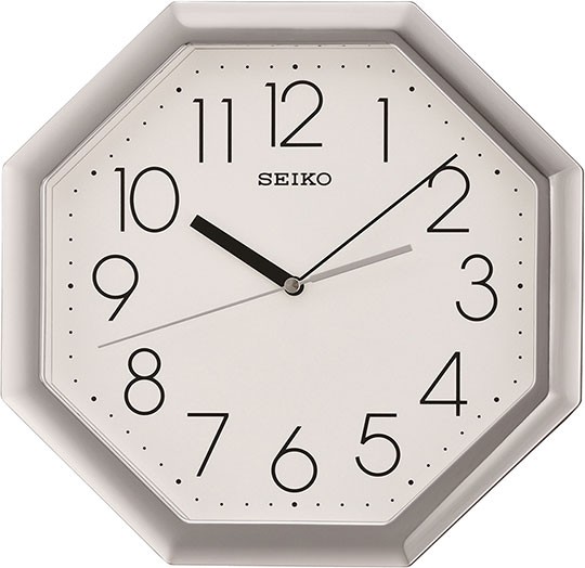 Настенные часы с кварцевым механизмом. Пластиковый корпус серебристого цвета. Требуется 1 батарейка AA (в комплекте).
