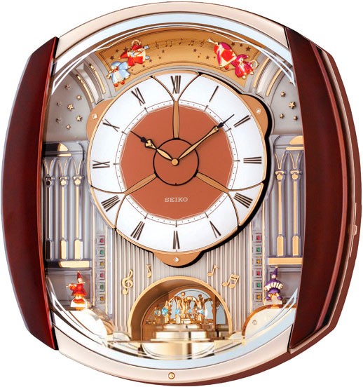 В конце каждого часа под музыку циферблат вращается и раскладывается на части. Режим демонстрации звука. Требуются 4 батарейки D (в комплекте).