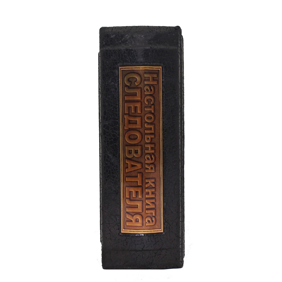 Цельнокожаный переплёт ручной работы, украшен иллюстрированной вставкой из цветного металла.