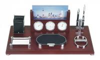 В наборе: часы, термометр, гигрометр (влажность), фоторамка, подставка под ручки, ручка, нож д/бумаг, визитница, блок для записей, подставка под скрепки и др.мелочи, место под гравировку.