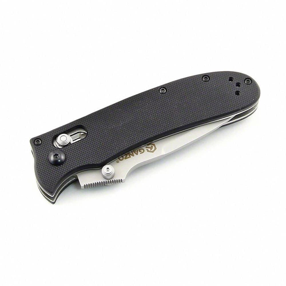 Описание Ganzo G704: Ganzo 704 — очень удачная модель туристического ножа от компании Ganzo, предложенная в трех цветовых оформлениях рукояти. Функциональный клинок классической формы drop-point с прямой заточкой выполнен из легированной высококлассной стали марки 440С (58-60 HRC) и фиксируется механизмом Axis Lock. Туристический складной нож Ganzo 704 не только привлекательно выглядит, но и прекрасно сбалансирован. В рабочем состоянии размер ножа — 20 см, а на лезвие отведено 8.6 см. Выбранная длина рукояти и текстурирование внешних панелей являются оптимальными решениями для удобного хвата и комфортной работы. На обухе имеются насечки, обеспечивающие надежное сцепление рабочего пальца с обухом при сильном давлении на инструмент. Материал рукояти — композитный текстолит G10 — наделен высокими показателями прочности и износостойкости. В целом, Ganzo 704 очень удобен и мобилен, - его размер в собранном состоянии всего лишь 11.5 см, а вес — 140г. В управлении нож тоже весьма эргономичен и безопасен, благодаря надежному и прочному фиксатору Axis Lock модель легко открывается и закрывается одной рукой. Закаленная сталь клинка Ganzo 704 не подвержена коррозии, а так же обладает крайне удачным соотношением прочности и пластичности для того, чтобы держать заточку на протяжении длительной эксплуатации и не подвергаться разрушению от нагрузок. Такое лезвие будет служить вам долго и качественно, а также не потребует особых приемов заточки. Карманный складной нож Ganzo 704 — модель весьма привлекательная для любого активного человека или коллекционера. Изделие отлично проявит себя в походе, на природе, на пляже, кемпинге или в дороге, а скромные габаритные размеры легко позволяют использовать нож в качестве повседневного портативного инструмента. Тип замка: Axis Lock Материал клинка: 440C (58-60 HRC) Материал рукоятки: G10 Длина клинка: 86 мм Толщина клинка по обуху: 3,8 мм Длина в походном положении: 115 мм Длина в рабочем положении: 200 мм Масса: 147 г