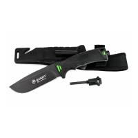 Описание Ganzo G8012-BK: Нож модели Ganzo G8012 стоит взять с собою в путешествие или турпоход, в любую экспедицию. Он создан таким образом, чтобы прийти на помощь своему владельцу даже в самые сложные моменты. Основной материал ножа — сталь марки 7Cr17. Она содержит большое количество углерода и может быть закалена до 57 HRC. При этом, коррозийная стойкость сплава без проблем позволяет использовать его в условиях повышенной сырости. Клинок жестко зафиксирован по отношению к рукоятке, что повышает стойкость ножа к нагрузкам. 11,5 см из общей длины приходится именно на клинок, который имеет прямую заточку. Поверхность лезвия матовая и черная. Помимо того, что такой нож очень стильно выглядит, он вполне может использоваться в тактических целях. Рукоятка изготовлена из пластика ABS. Он относится к группе термопластиков, которые известны прочностью и долговечностью. Рукоятка в данной модели может комбинировать элементы черного и оранжевого цвета, либо черного и зеленого. В этих же оттенках выполнен и чехол для ножа. Он сделан из нейлона и пластика, а нож удерживает внутри при помощи застежки-липучки. С обратной стороны чехла встроена компактная металлическая пластина с алмазным напылением, которая является практичной и легкой точилкой для ровного участка лезвия. Кроме того, в чехол встроен стропорез, а в специальном гнезде закреплено вынимающееся огниво. В дополнение к этому, рукоятка ножа оканчивается небольшим плоским выступом, выполняющим роль стеклобоя. Имея в своем распоряжении ножик Ganzo G8012, можно смело отправляться в любую экспедицию. Ведь он поможет достойно выбраться даже из самых экстремальных ситуаций. Стеклобой закреплен на фиксатор резьбы. Во избежание поломки резьбы, категорически не рекомендуется пытаться его открутить. Особенности: полный размер ножа — 24,5 см размер клинка — 11,5 см размер рукоятки — 12,5 см толщина пластины клинка - 0,5 см марка стали — 7Cr17 материал рукоятки — ABS термопластик вес ножа — 356 г твердость закалки +-57HRC в комплекте ножны встроенная в ножны алмазная точилка встроенный стропорез в комплект входит огниво. Гарантия: Для ножа Ganzo G8012 период гарантии составляет год, начиная с даты, когда он был приобретен.