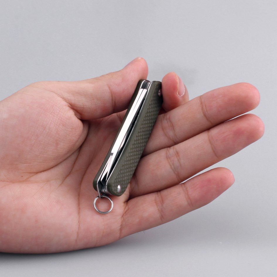 Описание ножа Ruike Criterion Collection S21: Ruike S21 – пожалуй, один из наиболее компактных ножей туристического назначения. Его длина в сложенном виде составляет 71 мм, а на клинок приходится 53 мм. Тем не менее, все рабочие качества данной модели строго выверены, чтобы нож служил действительно удобным и практичным инструментов. Его стоит взять с собою в кемпинг, на рыбалку, в обычную загородную поездку с пикником. Инструменты этого складного ножа сделаны из стали высокого качества. Данный сплав имеет маркировку 12С27 и хорошо известен в ножевой промышленности. Благодаря особым легирующим добавкам, он отлично противостоит коррозии. Тем не менее, это действительно твердый сплав в отличие от многих других нержавеек. Он закаляется до твердости 59 HRC, что не мешает затачивать нож даже с помощью ручного инструмента. Лезвие ножа Ruike S21 сделано классическим по форме – drop-point. Кроме того, оно гладко заточено, что также говорит о его универсальности по отношению к резу материалов с разной структурой. Толщина обуха небольшая – всего 2 мм. Это означает, что нож не предназначен, например, для заготовки щепок, но выполненные с его помощью разрезы будут аккуратными и максимально точными. Рядом с клинком ножа в рукоятке размещается еще одна стальная пластина. В ней объединены сразу несколько дополнительных инструментов, которыми производители оснастили модель Ruike S21. На внешнем краю этой пластины сделана прямая отвертка, ширина шлица которой составляет 4 мм. Около нее размещен стропорез, а еще ближе к рукоятке – открывалка для бутылок. Для ручки Ruike S21 производители решили использовать стеклопластик, марка которого называется G10. Это композитный материал с небольшой массой, но солидным запасом прочности. Он не впитывает воду, что важно для туристических условий, сохраняет насыщенный цвет даже после длительного пребывания на солнце. Поскольку данный стеклопластик легко окрашивается, покупатели могут выбрать нож с ручкой зеленого, коричневого или же черного цвета. Для фиксации ножа в кармане штанов или где-либо еще, на ручке Ruike S21 есть стальная прижимная клипса. Также с торцевой стороны ручки имеется небольшое по размеру кольцо, которое можно использовать для крепления темляка. Еще одним немаловажным элементов для этого складного ножа является встроенный в него замок. Конструкция этого механизма называется Slip-joint. Он сделан таким образом, чтобы лезвие ножа не могло сложиться случайно, хотя замок и не рассчитан на жесткую фиксацию. Особенности: складной нож для туризма данная модель весит лишь 43 грамма размер модели в сложенном состоянии равен 71 мм размер лезвия ножа – 53 мм клинок гладко заточен по всей его длине форма лезвия – drop-point толщина обуха составляет 2 мм Ruike S21 оснащен несколькими дополнительными инструментами рукоятка сделана из стеклопластика нож оснащен замком конструкции slip-joint. Гарантия : Покупая ножи Ruike S21, вы получаете право на официальную гарантию сроком на 5 лет. Инструменты: Длинное лезвие Кольцо для ключей/темляка Малая отвертка 4 мм Стропорез Открывалка для бутылок Информация: Треугольник обозначает год, а цифры месяц, когда данный нож был произведен