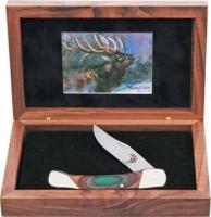 Складной нож Wildlife (S297SELK) из серии "Дикая природа", в уникальной подарочной коробке, производства компании Bear & Son Cutlery. На прочный клинок методом травления нанесен оригинальный рисунок лося. Рукоять ножа выполнена из натурального дерева естественного природного цвета, и укреплена мельхиоровыми вставками. Красивая подарочная коробка, изготовлена из ореха, украшена с внутренней стороны крышки цветной лазерной гравировкой в виде симпатичного лося в зарослях. Назначение: складной нож. Длина ножа в закрытом состоянии: 127 мм. Материал клинка: высоколегированная нержавеющая сталь 440A. Материал рукоятки ножа: натуральное дерево. Упаковка: подарочная коробка (орех)