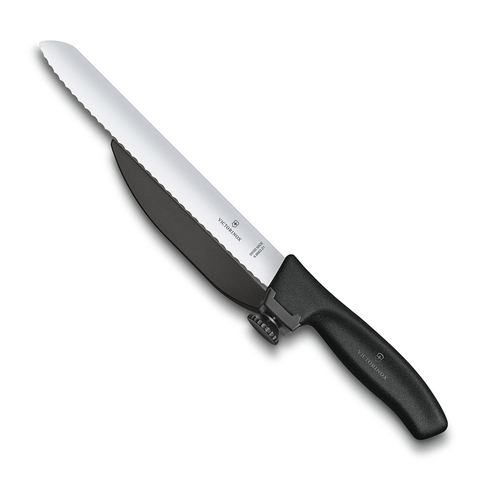 Швейцарский высокоточный нож Victorinox с лезвием 21 см нарезает идеально ровные ломтики. Он очень прост в использовании и легко справляется со всеми видами продуктов благодаря прочному лезвию с волнистой кромкой, эргономичной ручке и регулируемой направляющей для точной нарезки.