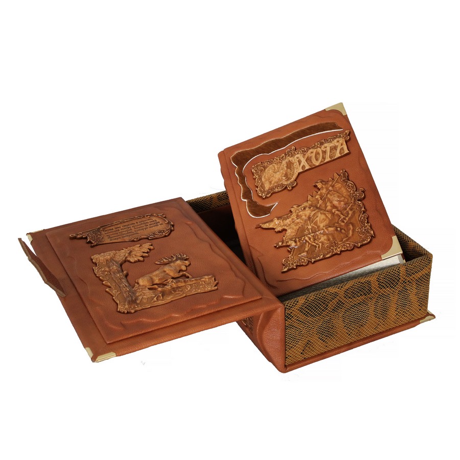 Данное репринтное издание представлено в подарочном коробе, сделанном из металла, и обтянутым вручную высококачественной принтованной кожей.