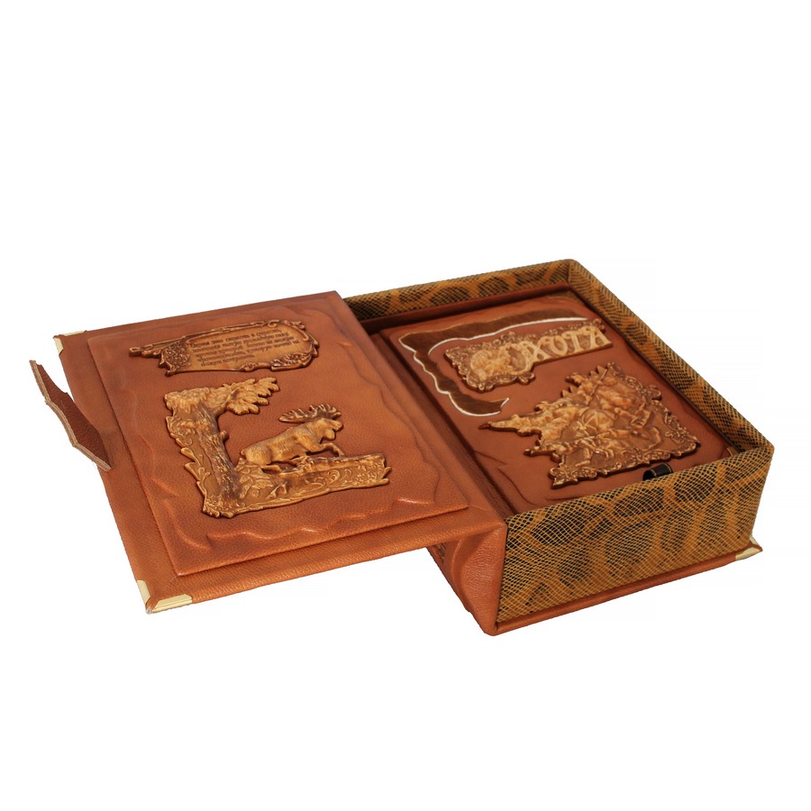 Книга и короб оформлены деревянными художественными вставками, дизайн которых соответствует общей тематике.