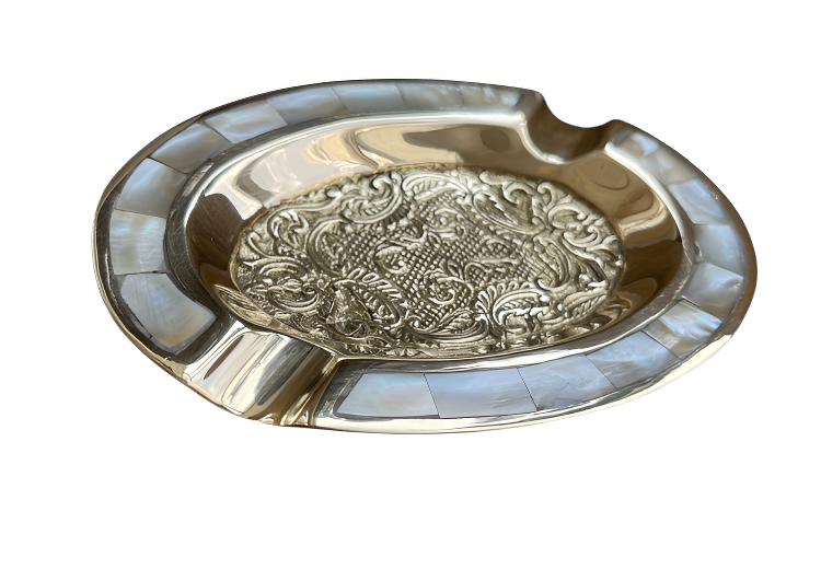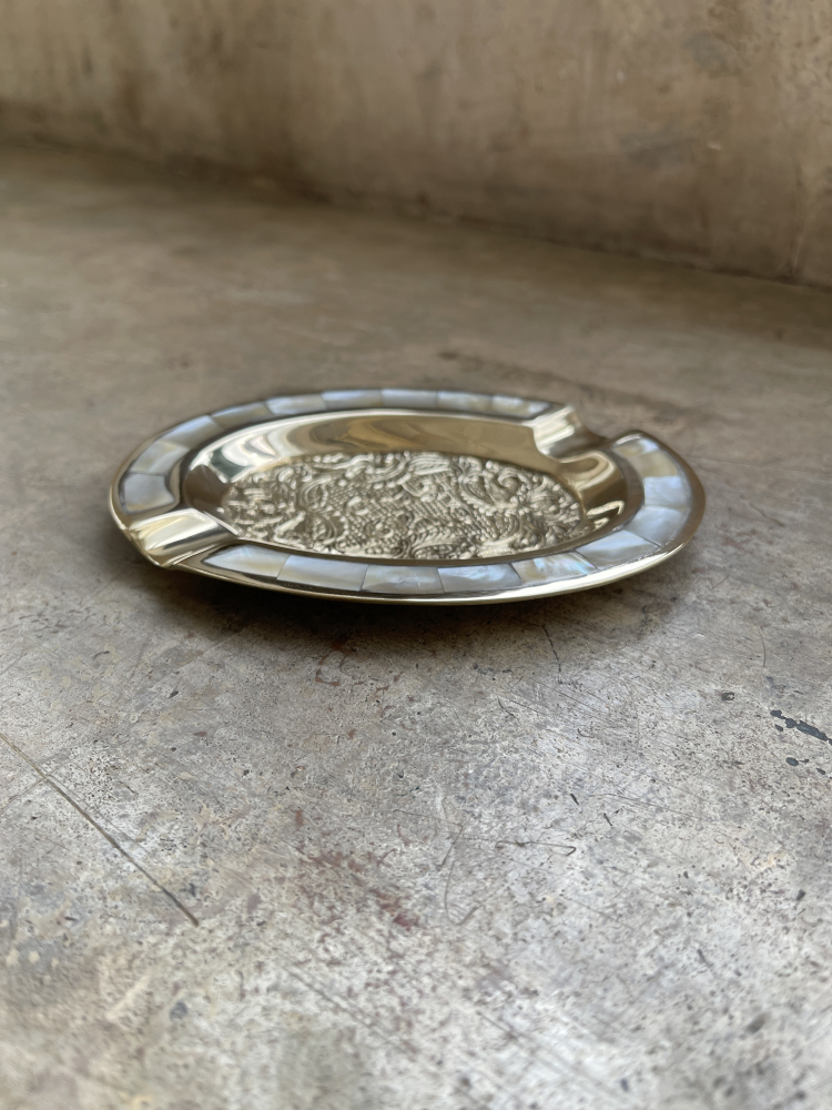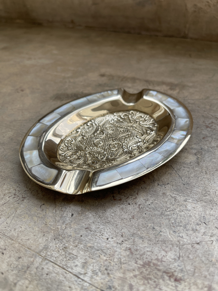 Пепельница овальная латунь с перламутром 5,5"