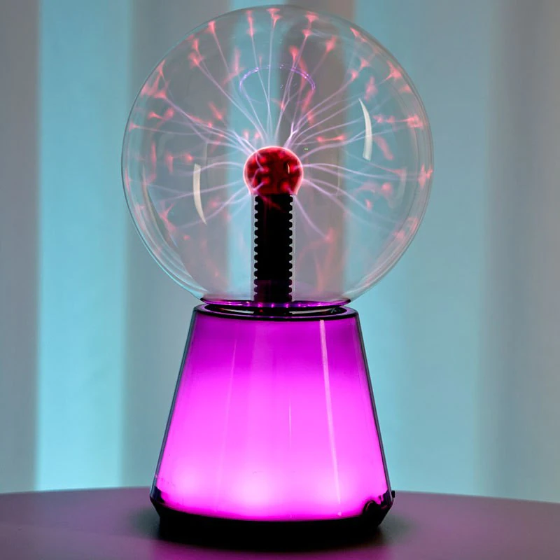 Как это работает В герметичном стеклянном шаре с разрежённым газом центральный электрод создаёт высокочастотное поле. Появляются розово‑фиолетовые разряды — нити плазмы, которые меняют траекторию при касании к стеклу. RGB‑подсветка в основании формирует мягкий фон, а аудиорежим добавляет динамику, реагируя на ритм музыки.