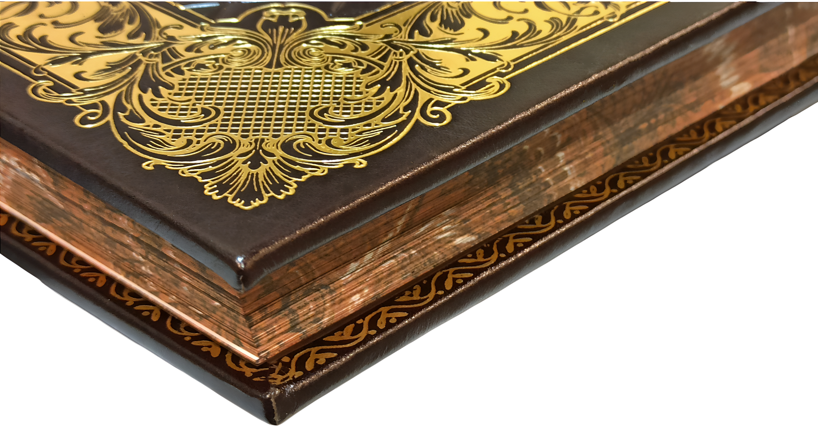 Дизайн издания представлен сочетанием блинтового и золотого тиснения и крашеным обрезом.