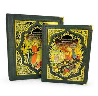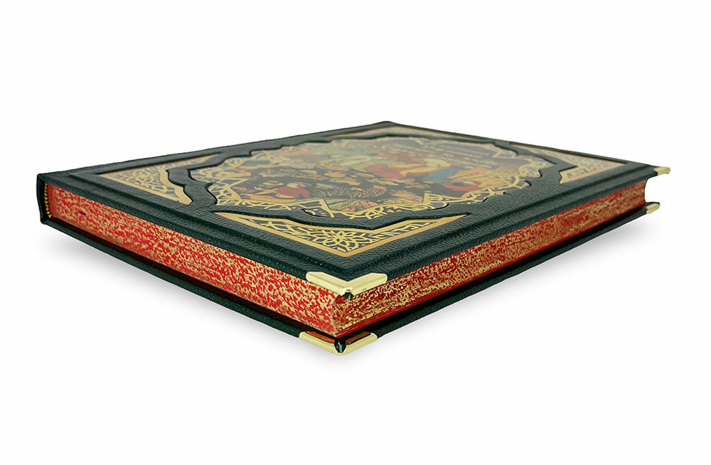 Книга представлена в оригинальном подарочном коробе, сделанном из мдф и обтянутым вручную высококачественной натуральной кожей. Цельнокожаный переплёт ручной работы, украшен иллюстрированной вставкой из цветного металла. Обложка двухуровневая. Металлические уголки дополняют дизайн и сохраняют книгу при использовании. Текст книги напечатан на мелованной бумаге и дополнен цветными иллюстрациями. Обрез оформлен художественным изображением. Ляссе из шёлковой ленты. Форзац цельный из дизайнерской бумаги.