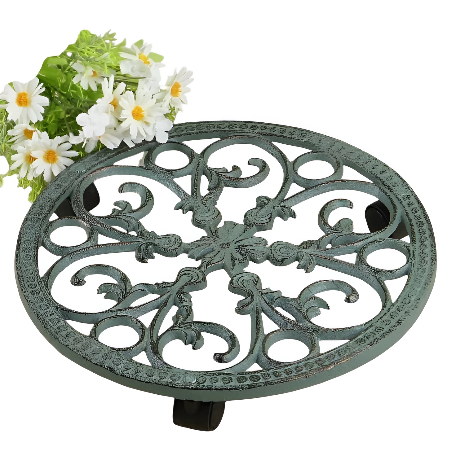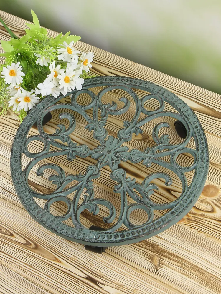 Чугунная подставка для цветов на колесиках