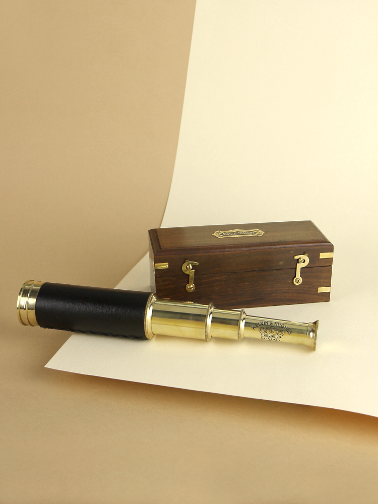 Подзорная труба с кожаным покрытием в дер. боксе сувенирная
