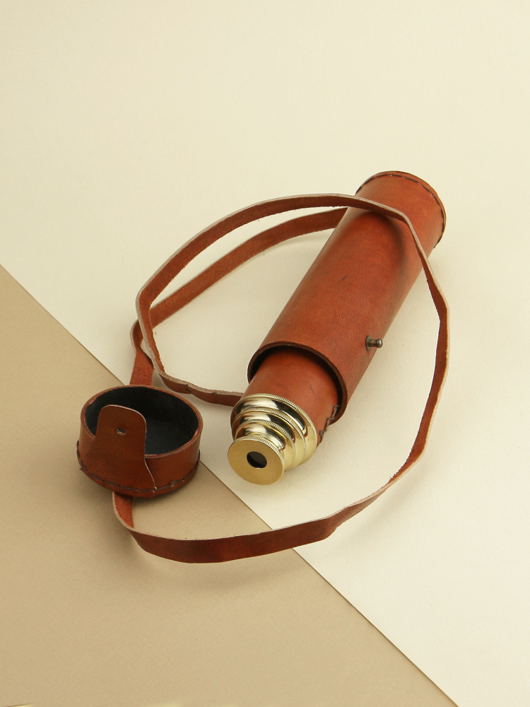 Подзорная труба с кожаным покрытием в кожаном футляре сувенирная