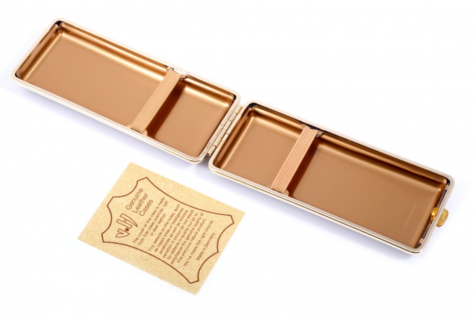 Портсигар от известного производителя курительных аксессуаров из Германии - компании Stoll GmbH (город Фассберг). Все изделия данного производителя отличаются отменным немецким качеством, лучшими материалами и изысканным дизайном. Данный портсигар является идеальной альтернативой бумажной сигаретной пачке и не позволит вашим сигаретам помяться (или даже сломаться) в кармане. Вы получите огромное удовольствие от повседневного пользования этим продуктом. Портсигар легко закрывается простым захлопыванием одной рукой, для этого, закрывая его, слегка нажимайте большим пальцем на крышку портсигара в районе замка по направлению к защелке.