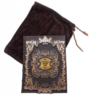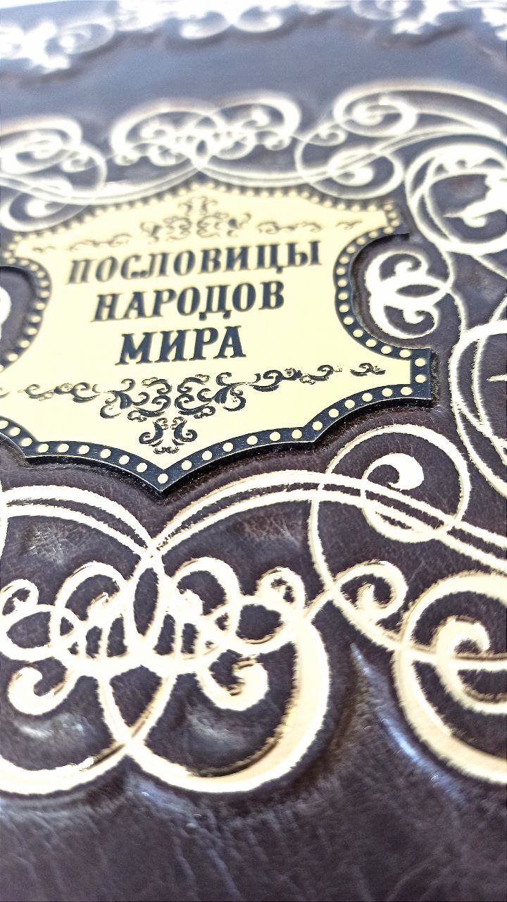 Цельнокожаный переплёт ручной работы, украшен вставкой из цветного металла с золотой печатью.Блинтовое и золотое тиснение.