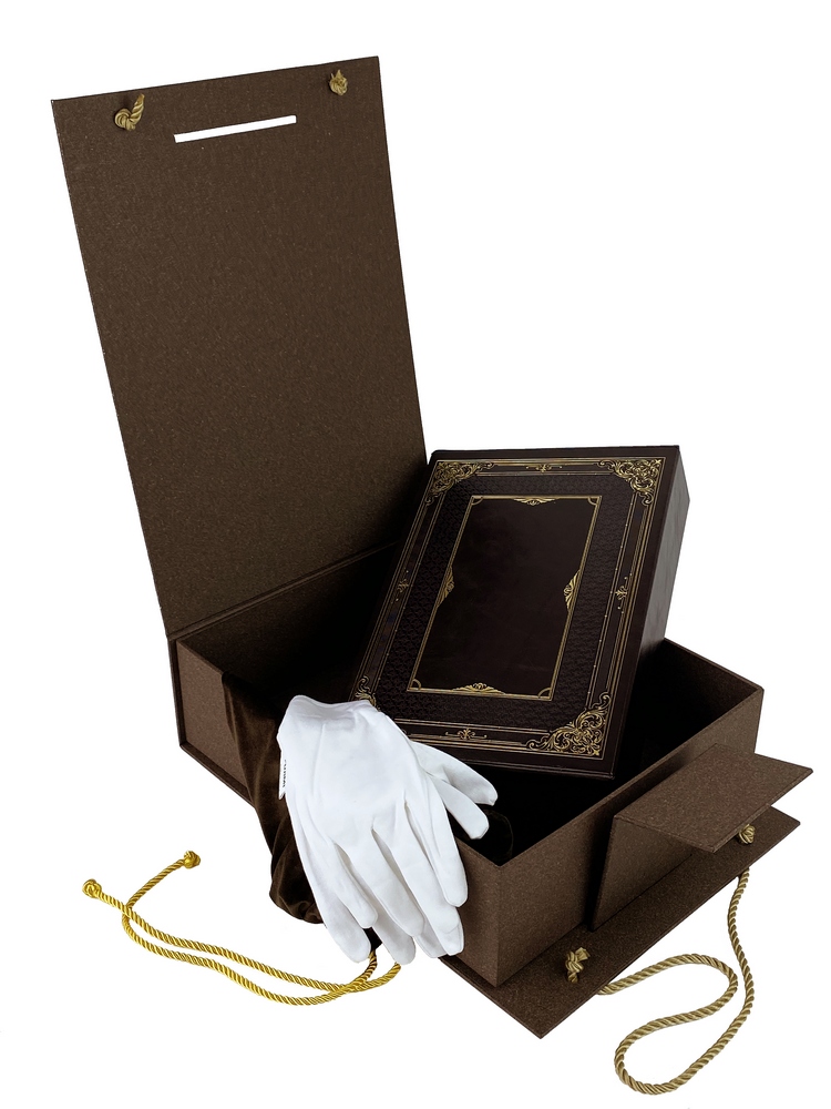 Книга представлена в оригинальном подарочном коробе, перчатки и, по желанию, сертификат (может быть именным) в комплекте.