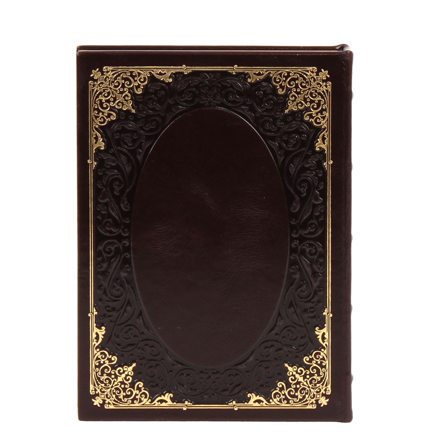 Цельнокожаный переплёт ручной работы, украшен золотым и блинтовым тиснением.