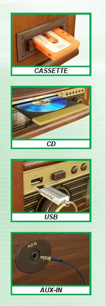 - Возможность записи мелодий на USB-носитель с кассеты, пластинок