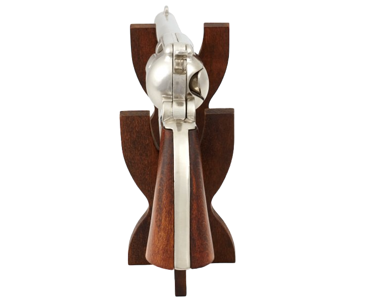 В макете использовался металлический сплав, а также натуральное дерево. Ударно-спусковой механизм здесь действующий, можно взвести курок и нажать на спуск, барабан вращается.