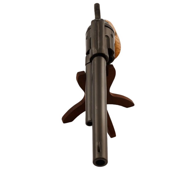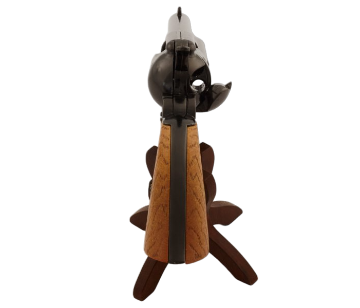 Изготовлен макет из сплава металла, с использованием на рукоятке накладок из пластика, имитирующего дерево. Макет имитирует механизм зарядки и выстрела за счет подвижного УСМ. Барабан вращается.