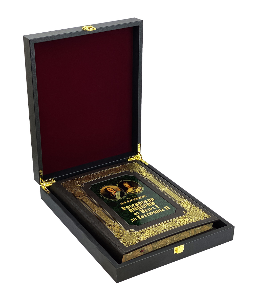 Дизайн прекрасно сочетает в себе золотое и блинтовое тиснение, художественную металлическую вставку, соответствующую тематике издания, а также крашенный в тон переплетного материала обрез.