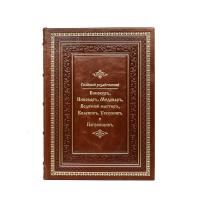В оформлении переплета применяется сочетание блинтового и золотого тиснения, выполненных на высококачественной натуральной коже.
