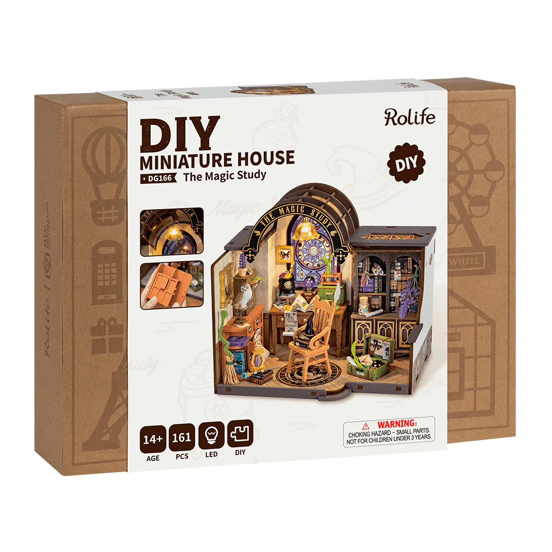 В волшебном мире никто не рождается со сверхъестественными способностями — их нужно изучать и учиться усиливать. Компания Rolife оживляет мистический мир колдовства и магии с помощью миниатюрного домика для магических исследований «Сделай сам». Эта модель профессионально изготовлена, чтобы создать идеальный образ стола волшебника и того, как готовятся магические зелья, прежде чем их заколдуют. Каждая деталь этого таинственного пространства выполнена с максимальной точностью: от хрустального шара, используемого для гадания, до шкафа, в котором хранятся зелья, и лампы, излучающей мягкое тепло. Комната представляет собой реалистичное пространство для волшебника, практикующего магию, и именно здесь разворачивается нечто неизвестное.