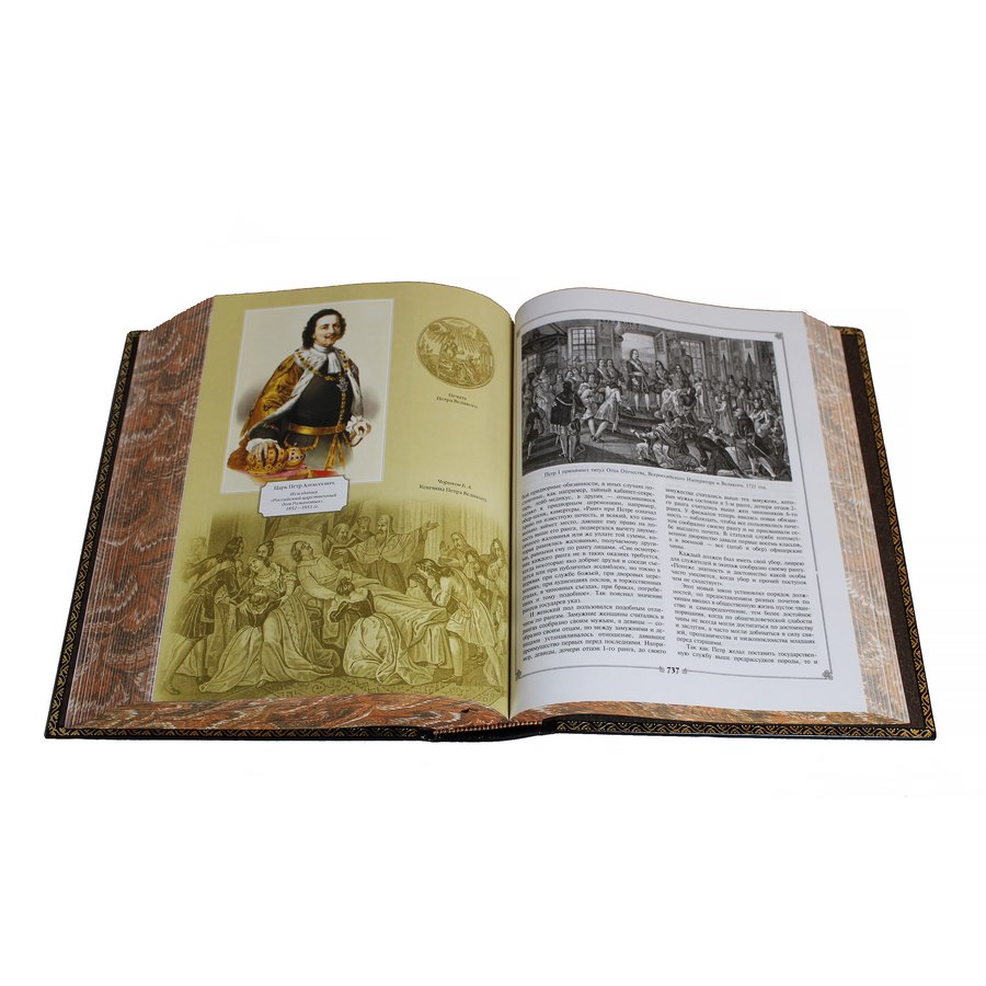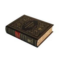 В оформлении переплета данного издания применяется сочетание блинтового и золотого тиснения, выполненных на высококачественной натуральной коже, а также вставка из кожи другого цвета и фактуры.