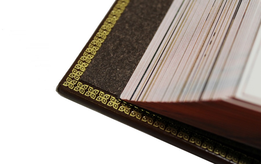 Сочетание блинтового и золотого тиснения выполненных на высококачественной натуральной коже.