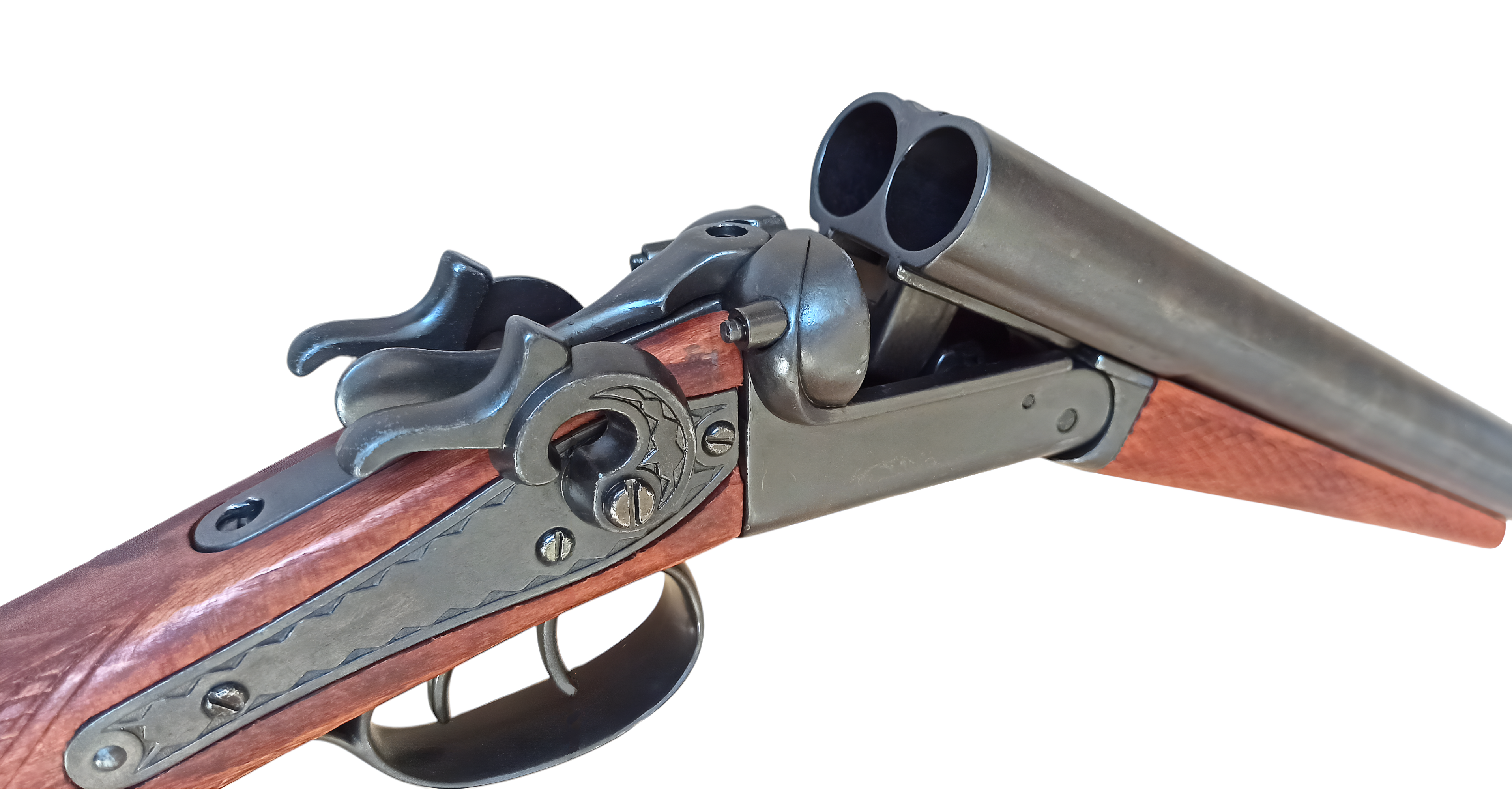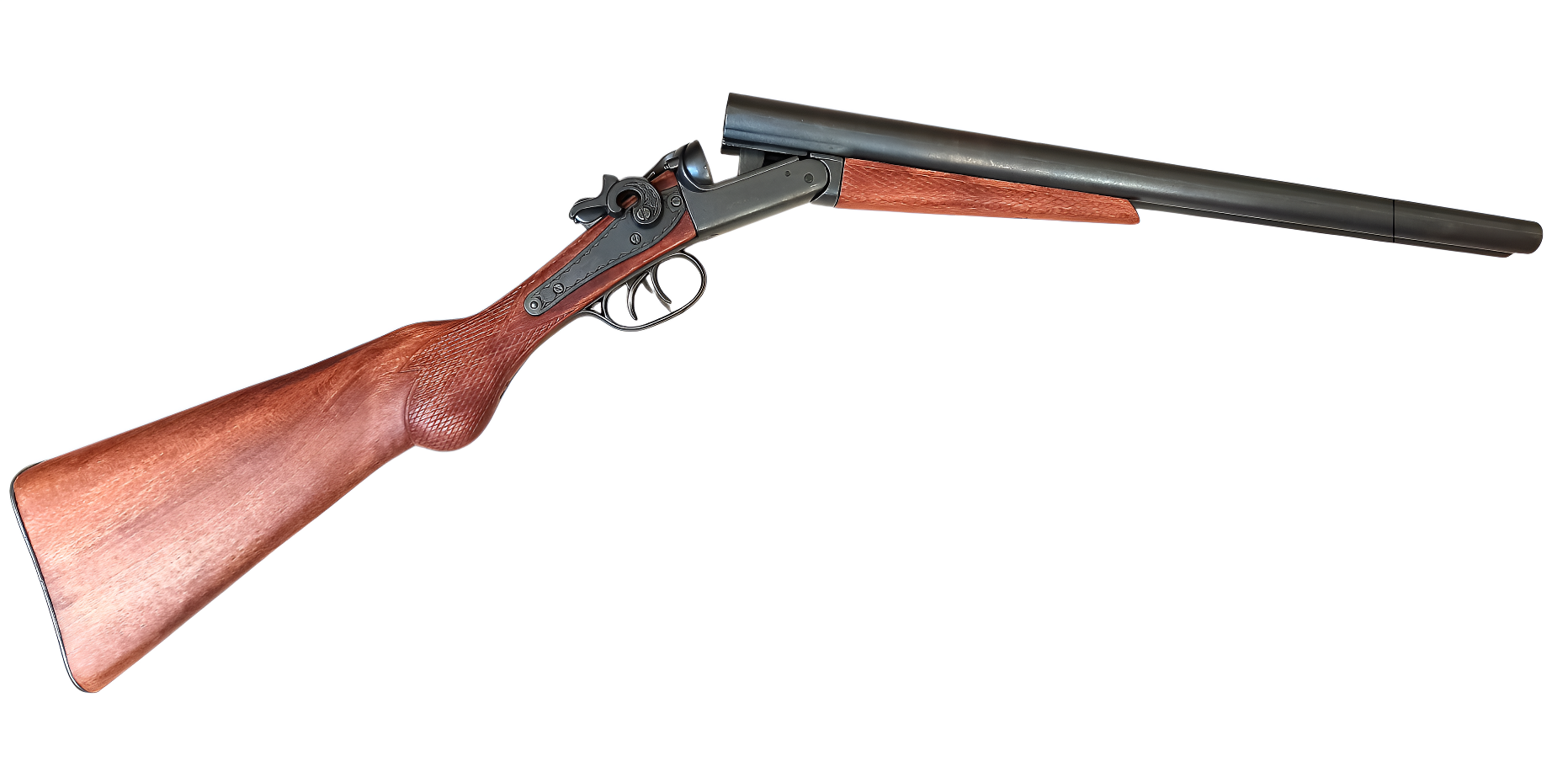 Обрез с имитацией механизма зарядки и выстрела, ствол переламывается.