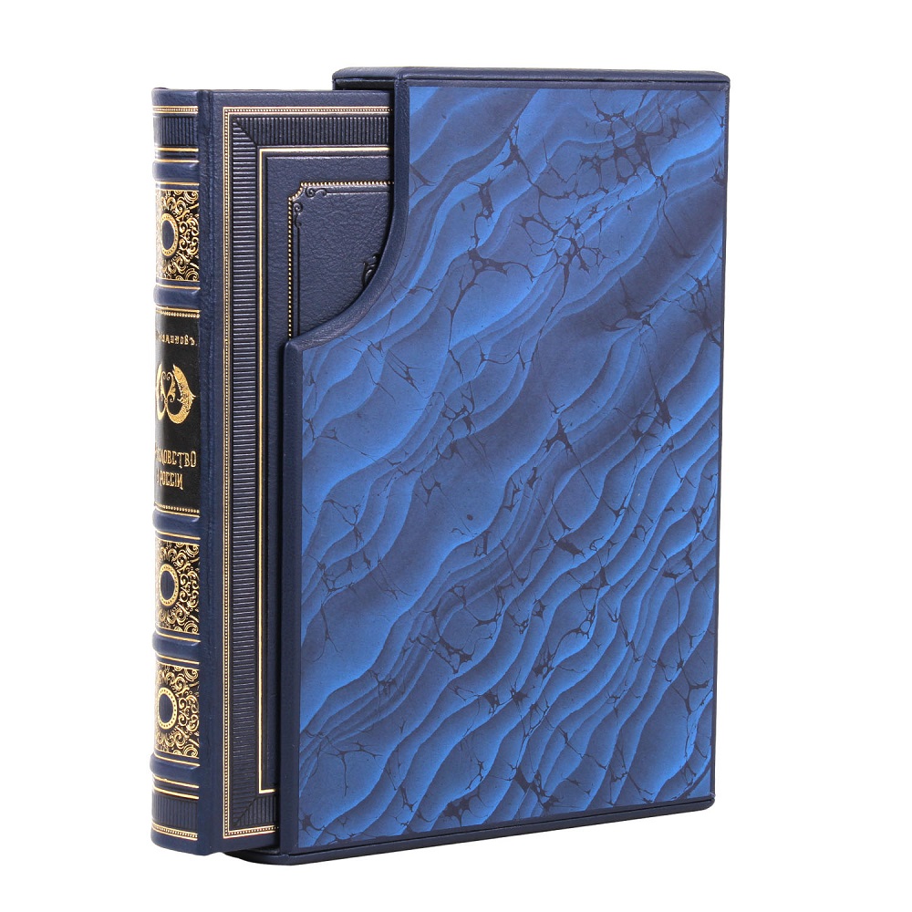 Цельнокожаный переплёт ручной работы, украшен цветным и золотым тиснением.