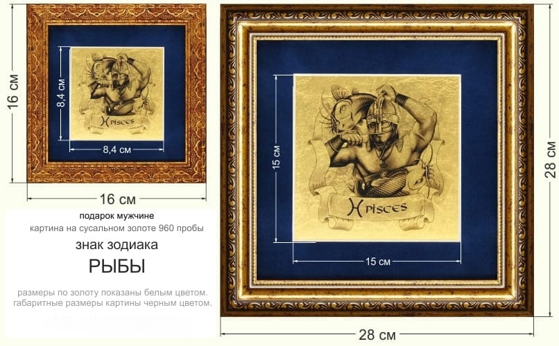 Картина на сусальном золоте «Знак Зодиака Рыбы»