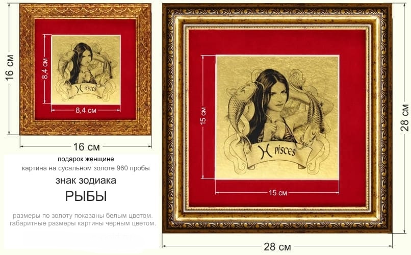 Картина на сусальном золоте «Знак Зодиака Рыбы» размером 150х150 мм (по золоту)