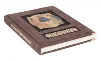 Кожаный тисненый переплет ручной работы с художественными вставками, металлические уголки, сертификат.