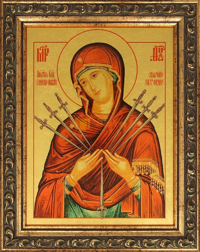 Почитаемая в Православной церкви икона Богородицы. Празднование иконе совершается 13 августа (по юлианскому календарю).Первообраз иконы происходит из Тошенской Иоанно-Богословской церкви в окрестностях Вологды на берегу реки Тошни. По преданию, икона была обретена крестьянином Кадниковского уезда, который нашёл её на колокольне церкви, где по ней ходили, принимая за доску.Икона имеет древнее происхождение, написана на холсте, наклеенном на доску. Богородица изображена пронзённой семью стрелами. На иконе Божия матерь изображается одна, пронзенная семью мечами. Семь мечей символизируют полноту печали и сердечной болезни, которые испытаны на земле Пресвятой Девой Марией.Дни празднования: 26 августа (13 августа по старому стилю)Строгого правила, в какой части квартиры размещать образ «Семистрельной» не существует. Кому-то привычнее ставить все иконы на домашний иконостас, кто-то вешает её над входом в главную комнату дома, т.е. чтобы входя в дом, все видели эту икону. Если же не планируется создание иконостаса, то образ можно разместить в восточной части комнаты ликом к входу, чтобы она защищала дом от посетителей с недобрыми мыслями и намерениями.Семистрельная икона станет великолепным подарком человеку, которому предстоит пройти серьезные испытания в жизни, будь то важные экзамены, переезд, изменение статуса или семейного положения. Также Семистельную икону необходимо приобрести православной семье для ее сохранения, если семья находится на грани распада, чтобы восстановить благодать и сохранить семью.Молитва перед Семистрельной иконой Божьей матери защитит Вас и Вашу семью от чужой злобы, от непримиримых врагов, поможет прекратить вражду и восстановить мир между непримиримыми врагами.При появлении Семистрельной иконы в доме восстанавливается мир между супругами, между родителями и детьми, налаживаются отношения с соседями, с коллегами и руководителями на работе. А когда начинают враждовать целые народы, то к иконе прибегают с просьбой защитить и уберечь от врагов свой город, страну, своих близких.Также Семистрельная икона Божьей матери защитит Вас от внутреннего гнева и раздражения, которые в той или иной степени присутствуют у всех и разрушают Вас изнутри.