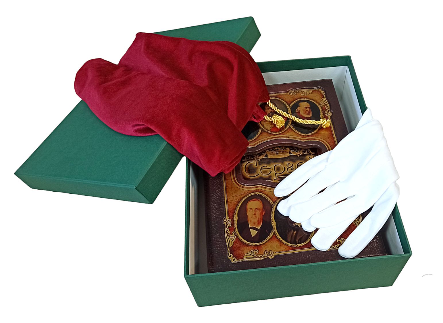 - Эксклюзивное подарочное издание в кожаном переплете с золотым и блинтовым тиснениями, трехсторонним окрашенным обрезом и шелковым ляссе.