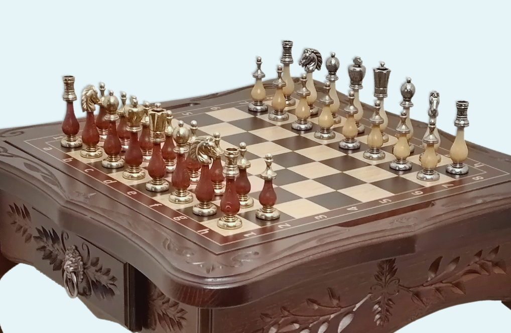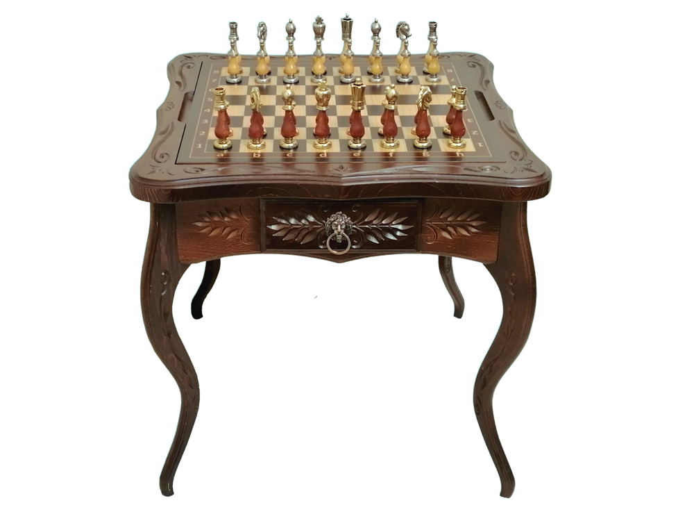 Шахматный-Ломберный стол резной узор, Italfama