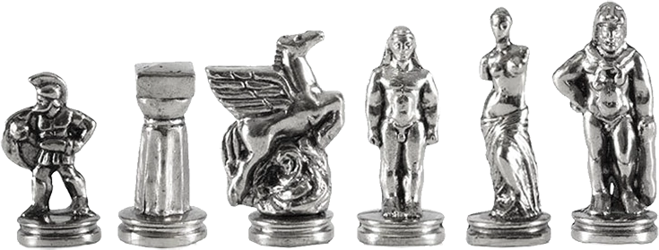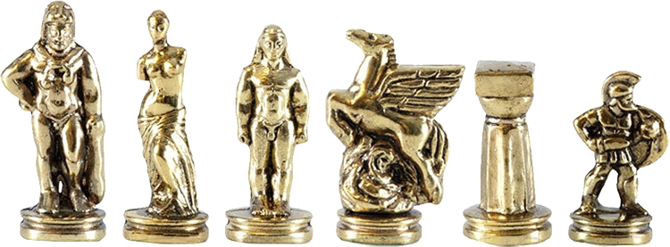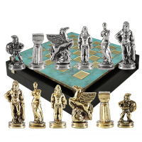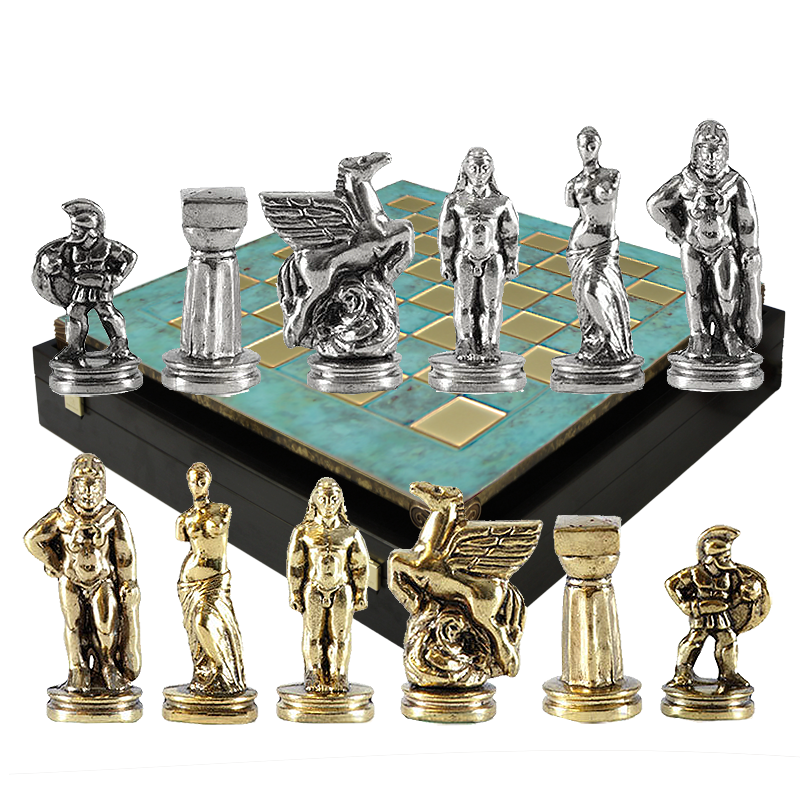 Шахматный набор "Древняя Спарта" (патинирован. мет. доска "Греция", 28х28, дер. короб, фигуры золото/серебро)