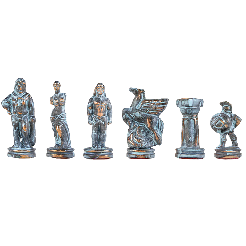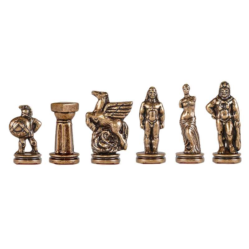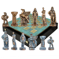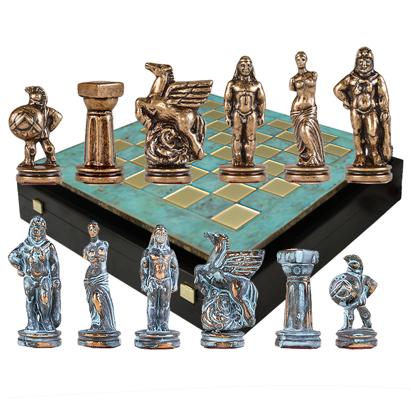 Шахматный набор "Древняя Спарта" (патинир. мет. доска "Греция", 28х28, дер. короб, фигуры бронза/патина)