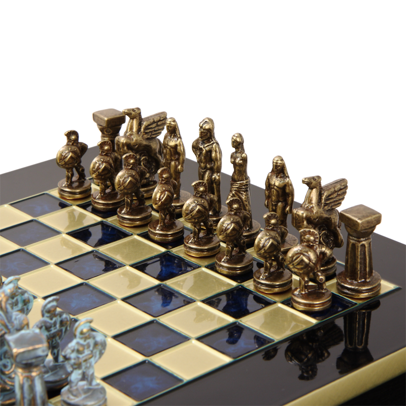 Шахматный набор "Древняя Спарта" (28x28 см), доска синяя
