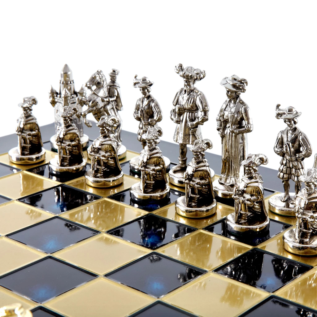 Набор шахмат «Рыцари средневековья» произведен в Греции на фабрике, специализирующейся на изготовлении шахмат и нард с 1970 года. Их изделия отличаются высокой степенью детализации отделки персонажей, оригинальным оформлением игральных досок и отменным качеством на протяжении всех лет деятельности. Краска на игровое поле наносится вручную, что наделяет каждый набор индивидуальностью и делает его неповторимым.