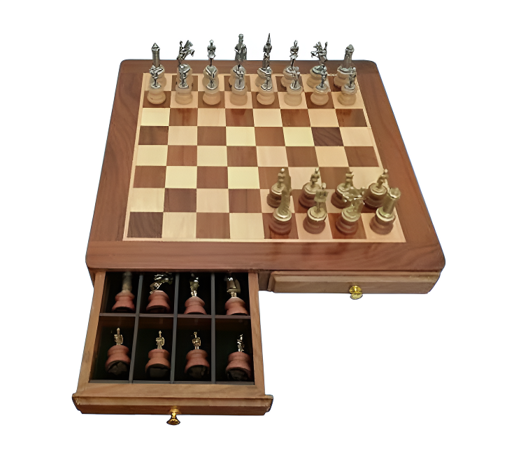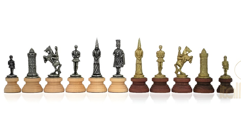 Шахматные фигуры из цельного металла и дерева, изготовлены вручную.