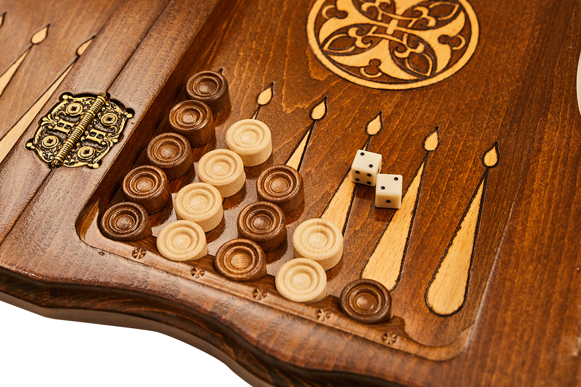 Разметка позволяет играть в нарды, шахматы или шашки. Ничего докупать не придётся, так как в наборе уже есть всё необходимое, и можно сразу после приобретения собирать с друзьями и начинать партию. Нести её будет легко, так как прямо в древесине вырезана ручка с удобными углублениями для пальцев.