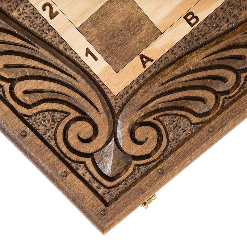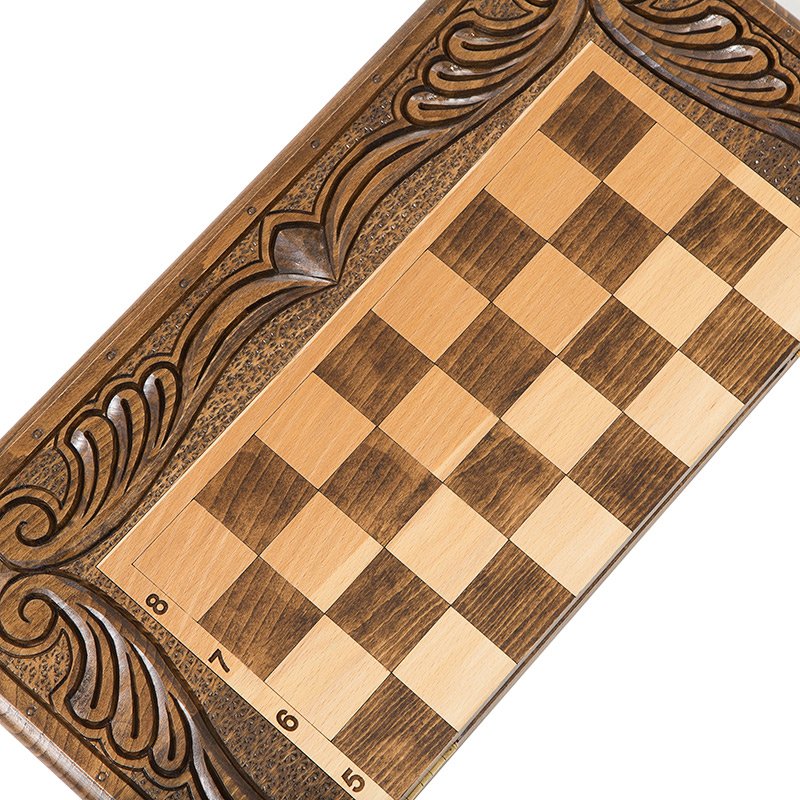 Набор резных нард с шахматами, сделанные из древесины бука собственными руками мастера Артура Мирзояна, чье имя стало известно далеко за пределами Армении, благодаря отличному качеству.