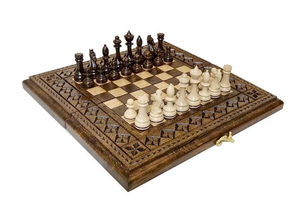 - Статус и престиж: Владение таким набором может подчеркнуть ваш вкус и статус. Резные шахматы и нарды в красивом ларце ассоциируются с роскошью и изысканностью, добавляя шарм вашему дому или кабинету.